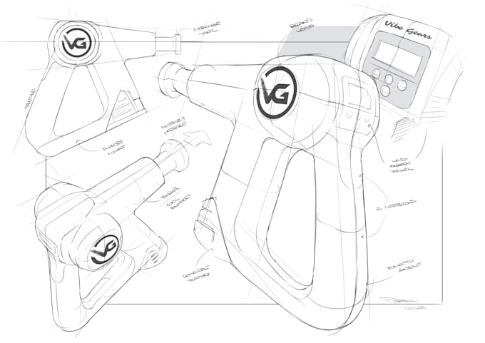 Sketches presentation including 3-4 views of your product (front, side, perspective...)